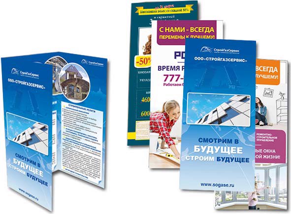 Он представляет собой информационный лист бумаги, носящий рекламный или информационный характер, имеющий несколько изгибов. При этом скрепление частей буклета не осуществляется. В итоге, рекламное изделие получается довольно компактной формы, а, кроме того, является достаточно доступным, благодаря применению технологии офсетной печати.